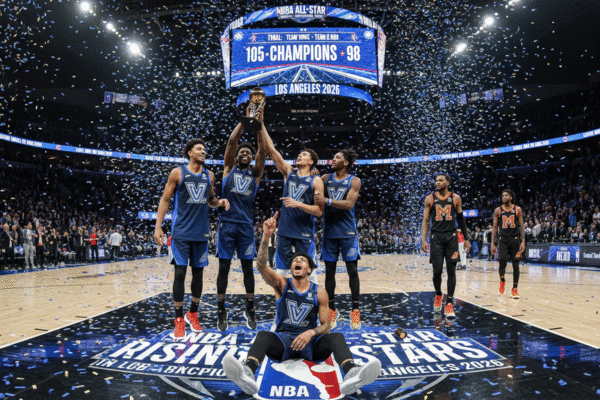 Dalam pertarungan epik para bintang muda yang sedang naik daun, Tim Vince berhasil meraih kemenangan menegangkan atas Tim Melo dalam pertandingan kejuaraan NBA All-Star 2026 Rising Stars. Dengan penampilan gemilang dari pemain kunci, kemenangan ini mengukuhkan status Tim Vince sebagai bintang-bintang muda yang patut diperhatikan di liga, sementara Tim Melo berencana untuk bangkit dan kembali lebih kuat musim depan.