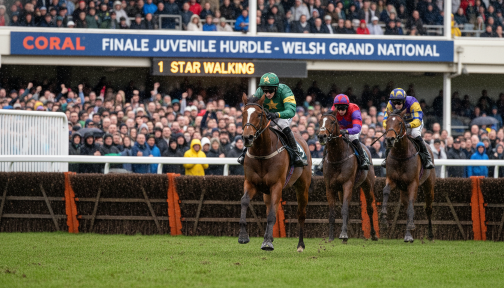 Dalam finis yang mendebarkan di Chepstow, Star Walking keluar sebagai pemenang di Coral Finale Juvenile Hurdle, dengan sempit mengalahkan pesaing. Kemenangan ini menandai pencapaian penting bagi kuda dan joki, memperlihatkan keterampilan dan determinasi mereka dalam perlombaan yang sangat kompetitif.